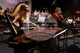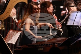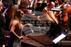 София (23 октомври 2025) В зала 3 на НДК се провежда „Фиеста - радостта от музицирането“ по случай 65-годишнината на детския хор на БНР. Това е концерт-празник, в който гласовете на хора затанцуват, заедно със Симфониета-Враца с главен диригент Христо Павлов, солисти и нови специални аранжименти. На концерта звучат ритмите и традициите на Латинска Америка, Испания и испаноезичния свят - от Бразилия, Мексико, Аржентина и Куба до Перу и Венецуела. На снимката: Василена Серафимова - маримба.