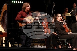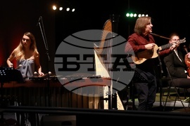 София (23 октомври 2025) В зала 3 на НДК се провежда „Фиеста - радостта от музицирането“ по случай 65-годишнината на детския хор на БНР. Това е концерт-празник, в който гласовете на хора затанцуват, заедно със Симфониета-Враца с главен диригент Христо Павлов, солисти и нови специални аранжименти. На концерта звучат ритмите и традициите на Латинска Америка, Испания и испаноезичния свят - от Бразилия, Мексико, Аржентина и Куба до Перу и Венецуела. На снимката: Василена Серафимова - маримба и Кито Гато- китара.