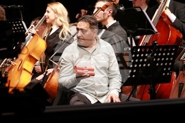 София (23 октомври 2025) В зала 3 на НДК се провежда „Фиеста - радостта от музицирането“ по случай 65-годишнината на детския хор на БНР. Това е концерт-празник, в който гласовете на хора затанцуват, заедно със Симфониета-Враца с главен диригент Христо Павлов, солисти и нови специални аранжименти. На концерта звучат ритмите и традициите на Латинска Америка, Испания и испаноезичния свят - от Бразилия, Мексико, Аржентина и Куба до Перу и Венецуела. На снимката: Александър Вълчев.