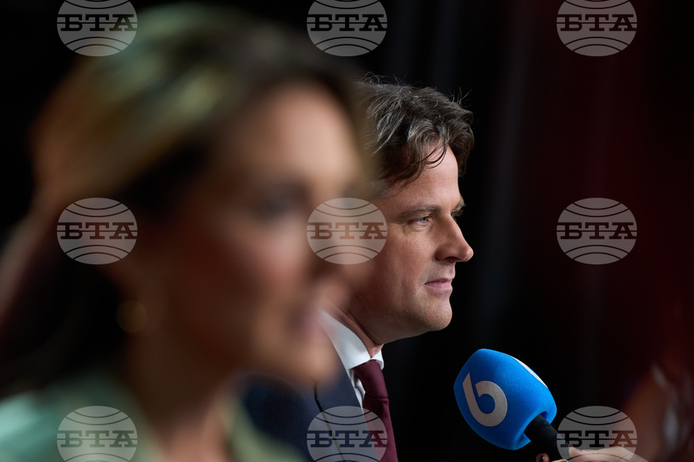 Dilan Yesilgöz, leader of the right-wing People's Party for Freedom and Democracy, left, and Henri Bontenbal, leader of the Christian Democratic Appeal party, reacts after the debate at the SBS6 TV studio in Hilversum, Netherlands, Thursday, Oct. 23, 2025. (AP Photo/Peter Dejong)