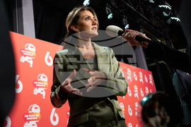Dilan Yesilgöz, leader of the right-wing People's Party for Freedom and Democracy reacts after the debate at the SBS6 TV studio in Hilversum, Netherlands, Thursday, Oct. 23, 2025. (AP Photo/Peter Dejong)