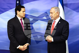U.S. Secretary of State Marco Rubio meets Israeli Prime Minister Benjamin Netanyahu at the Prime Minister's Office in Jerusalem, Thursday, Oct. 23, 2025. (Ronen Zvulun/Pool Photo via AP)