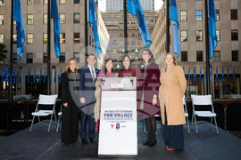 IMAGE DISTRIBUTED FOR TISHMAN SPEYER - Rockefeller Center Announced as Official Manhattan Fan Village for FIFA World Cup 2026. Representatives from NYNJ Host Committee, Telemundo, and Rockefeller Center announced New York New Jersey World Cup 26 & Telemundo Fan Village at Rockefeller Center on Thursday, October 23rd, 2025 in New York. [L to R: Executive Vice President of Marketing & Creative at Telemundo Claudia Chagui; CEO, FIFA World Cup 2026 NYNJ Host Committee Alex Lasry; First Lady of New Jersey & Board Chair, FIFA World Cup 2026 NYNJ Host Committee Tammy Murphy; Telemundo's Verónica Contreras; Head of Rockefeller Center EB Kelly; Deputy Chief of Staff to Mayor Eric Adams Madeline Labadie]. (Loren Matthew/AP Content Services for Tishman Speyer)
