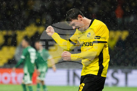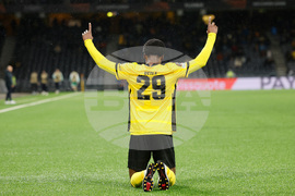 Young Boys' Christian Fassnacht celebrates after scoring his side's second goal of the game during the Europa League soccer match between Switzerland's BSC Young Boys and Bulgaria's PFC Ludogorets Razgrad, in Bern, Switzerland, Thursday, Oct. 23, 2025. (Peter Klaunzer/Keystone via AP)