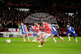 Porto's Pepe shoots at goal during the UEFA Europa League match between Nottingham Forest and Porto, in Nottingham, England, Thursday Oct. 23, 2025. (Mike Egerton/PA via AP)