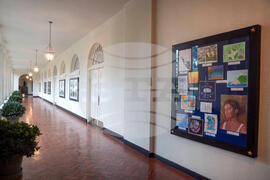 FILE - Artwork by military children decorates a display in the East Colonnade of the East Wing at the White House, Sept. 26, 2023, in Washington. (AP Photo/Mark Schiefelbein, File)