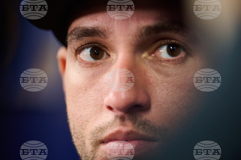 Toronto Blue Jays' Bo Bichette speaks to media during the Toronto Blue Jays' media day ahead of the 2025 World Series against the Los Angeles Dodgers in Toronto, on Thursday, Oct. 23, 2025. (Sammy Kogan/The Canadian Press via AP)