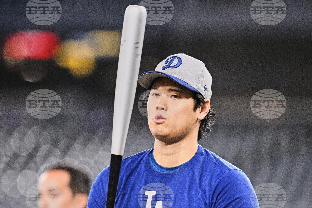 Los Angeles Dodgers' Shohei Ohtani (17) looks on during batting practice ahead of the 2025 World Series against the Toronto Blue Jays in Toronto, on Thursday, Oct. 23, 2025. (Sammy Kogan/The Canadian Press via AP)