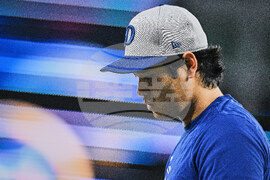 Los Angeles Dodgers manager Dave Roberts looks on during batting practice ahead of the 2025 World Series against the Toronto Blue Jays in Toronto, on Thursday, Oct. 23, 2025. (Sammy Kogan/The Canadian Press via AP)