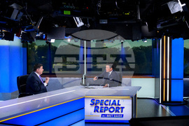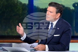 Bret Baier speaks during a taping of FOX News Channel's Special Report with Bret Baier as he interviews Illinois Gov. JB Pritzker at the Washington bureau of FOX News, Thursday, Oct. 23, 2025, in Washington. (AP Photo/Rod Lamkey, Jr.)