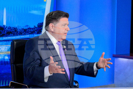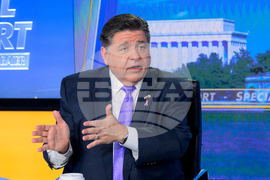 Illinois Gov. JB Pritzker speaks during a taping of FOX News Channel's Special Report with Bret Baier at the Washington bureau of FOX News, Thursday, Oct. 23, 2025, in Washington. (AP Photo/Rod Lamkey, Jr.)