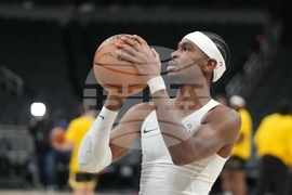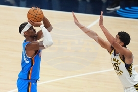 Oklahoma City Thunder's Shai Gilgeous-Alexander shoots before an NBA basketball game against the Indiana Pacers, Thursday, Oct. 23, 2025, in Indianapolis. (AP Photo/Darron Cummings)