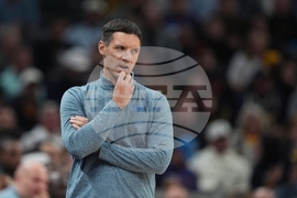 Oklahoma City Thunder head coach Mark Daigneault watches during the second half of an NBA basketball game against the Indiana Pacers, Thursday, Oct. 23, 2025, in Indianapolis. (AP Photo/Darron Cummings)