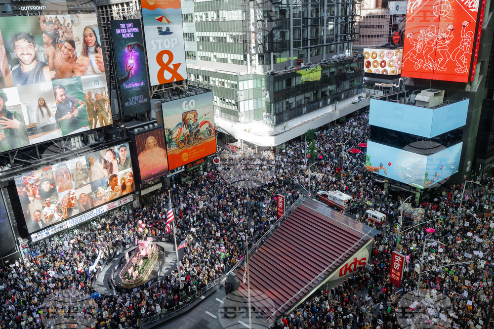 FILE - Thousands of protesters fill Times Square during a "No Kings" protest in New York, Oct. 18, 2025. (AP Photo/Olga Fedorova, File)