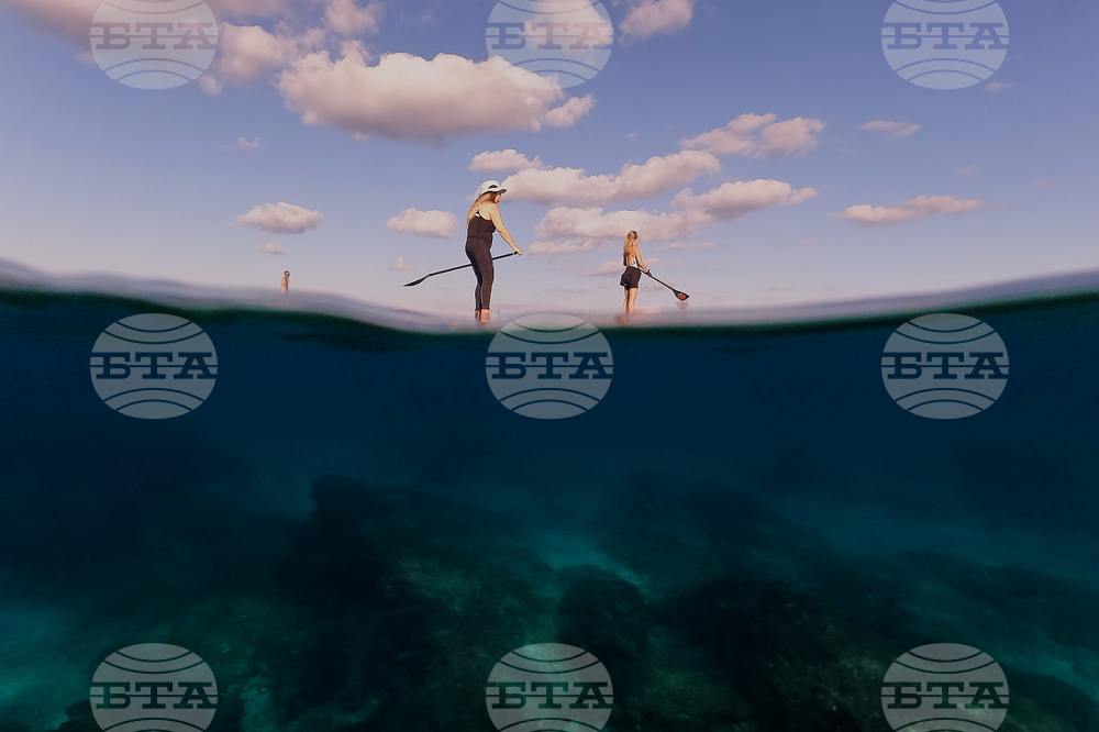 FILE - People paddle board in the Mediterranean Sea in the Gador Sea and Nature Reserve in Hadera, Israel, after a ceasefire agreement between Israel and Hamas, Oct. 18, 2025. (AP Photo/Ariel Schalit, File)