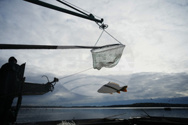 FILE - Fishermen sort fish during a traditional fish haul of the Rozmberk pond near the town of Trebon, Czech Republic, Oct. 17, 2025. (AP Photo/Petr David Josek, File)