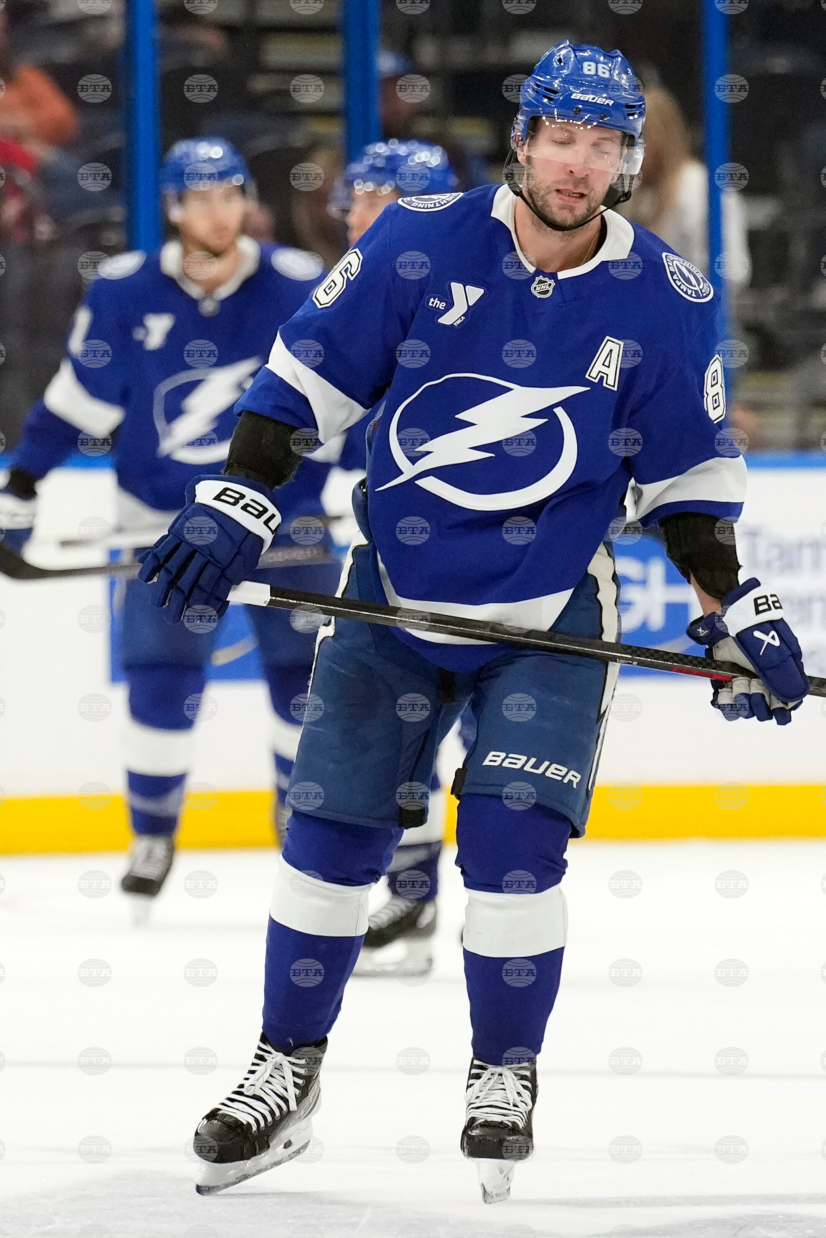 Tampa Bay Lightning right wing Nikita Kucherov skates off after the team lost to the Chicago Blackhawks during an NHL hockey game Thursday, Oct. 23, 2025, in Tampa, Fla. (AP Photo/Chris O'Meara)