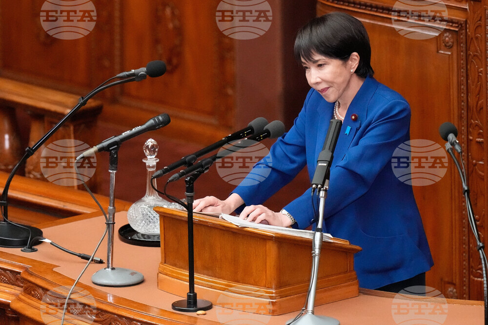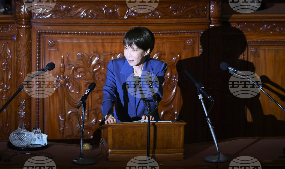 Japan's Prime Minister Sanae Takaichi delivers a policy speech at parliament in Tokyo Friday, Oct. 24, 2025. (Tsuyoshi Ueda/Kyodo News via AP)
