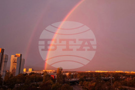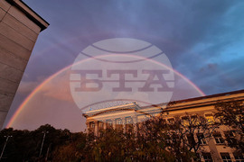 София (24 октомври 2025) В небето над столицата изгря двойна дъга след сутрешния дъжд в ранните часове на деня.