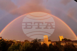 София (24 октомври 2025) Двойна дъга изгря над София след дъжда в ранните часове на деня. Дъгата се образува чрез пречупване и разлагане на слънчевата светлина в множество дъждовни капки във въздуха.