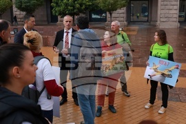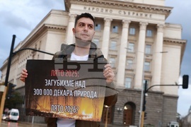 София (24 октомври 2025) WWF България организира публично внасяне на петиция в Министерски съвет от името на над 13 500 души, които с имейл призовават премиера и правителството да изпълнят решението на Народното събрание от 23 юли 2024 г. - да бъдат предприети необходимите действия за закупуване на специализирана летателна техника за гасене на пожари. На снимката: Владимир Иванов от WWF България.