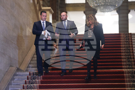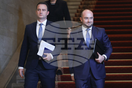 София (24 октомври 2025) Изявления след свиканото от министър-председателят Росен Желязков работно съвещание във връзка с решението на САЩ да наложи санкции срещу "Роснефт" и "Лукойл". На работното съвещание доклади по темата представят министрите на вътрешните работи Даниел Митов, на външните работи Георг Георгиев, на енергетиката Жечо Станков, на финансите Теменужка Петкова, на икономиката Петър Дилов, на правосъдието Георги Георгиев, както и ръководителите на службите у нас. На снимката: министрите Жечо Станков (вляво) и Георги Георгиев.