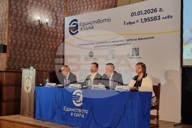 Перник (24 октомври 2025) Информационна среща във връзка с въвеждането на еврото в България се проведе в Перник. В нея участваха заместник-министърът на външните работи Николай Павлов, областният управител Людмил Веселинов, кметът на общината Станислав Владимиров, директорът на Националния осигурителен институт Весела Караиванова-Начева, както и представители на различни институции. Инициативата е част от Националната информационна кампания за въвеждането на еврото в България и се състоя в зала „Тържествена“ на Минната дирекция. На снимката (от ляво надясно): областният управител Людмил Веселинов, заместник-министърът на външните работи Николай Павлов, кметът на общината Станислав Владимиров, директорът на Националния осигурителен институт Весела Караиванова-Начева.