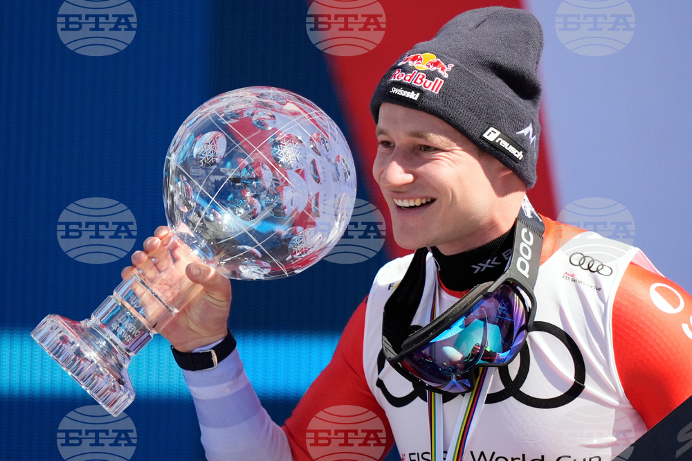 FILE - Switzerland's Marco Odermatt poses after winning the men's World Cup overall at the World Cup Finals, Thursday, March 27, 2025, in Sun Valley, Idaho. (AP Photo/Robert F. Bukaty, File)