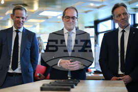 From left, Federal Government Commissioner for Drugs Hendrik Streeck, German Minister of the Interior Alexander Dobrindt, and BKA President Holger Münch stand behind a table on which alarm guns and their conversions are presented during a press conference at the Federal Criminal Police Office (BKA), in Wiesbaden, Germany, Friday Oct. 24, 2025, as the Federal Ministry of the Interior and the BKA present the Federal Situation Reports on Narcotics and Organized Crime 2024. (Arne Dedert/dpa via AP)