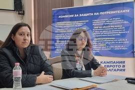 Кнежа (24 октомври 2025) В Кнежа се състоя информационна среща във връзка с националната кампания за въвеждане на единната европейска валута. В нея участваха експерти на Комисията за защита на потребителите (КЗП) и Националната агенция за приходите (НАП). На снимката (от ляво надясно): главният инспектор в КЗП Ралица Кръстева (вляво) и директорът на плевенския офис на НАП Цветомила Потурлиева.