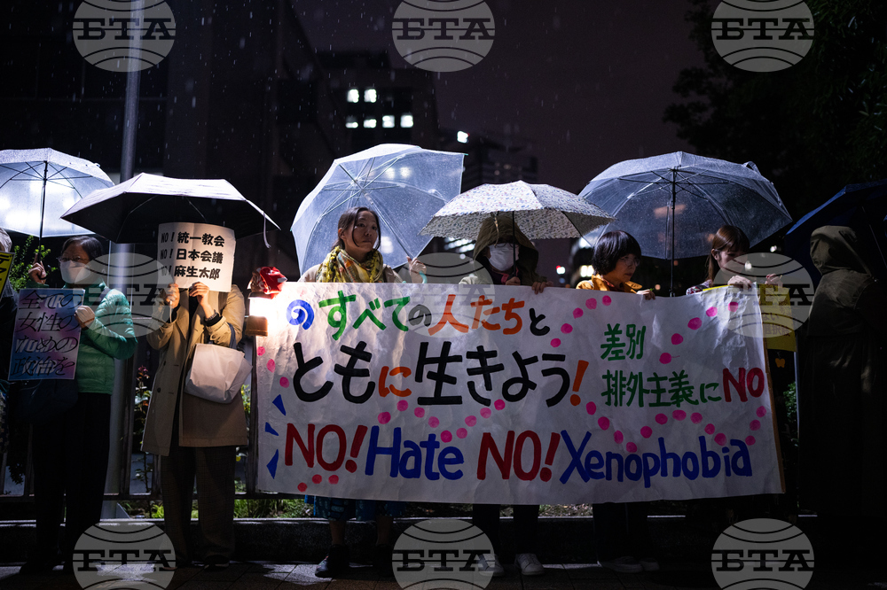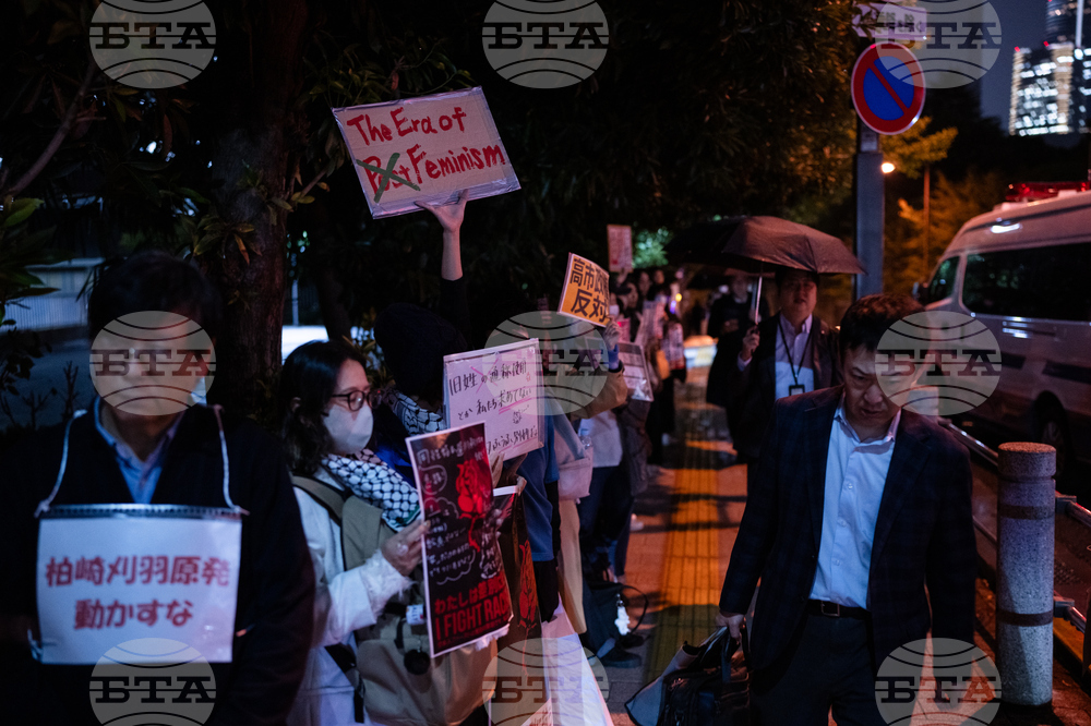 Demonstrators protest outside the Prime Minister's Office during a feminist rally against the government of ultraconservative Japan's new prime minister Sanae Takaichi, in Tokyo, Friday, Oct. 24, 2025. (AP Photo/Louise Delmotte)