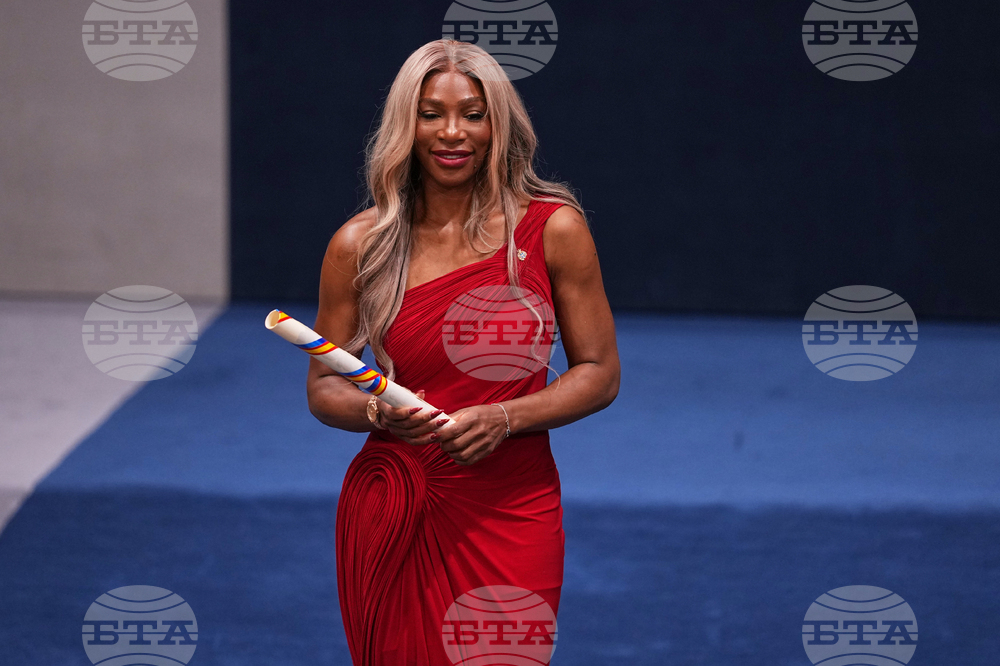Serena Williams receives the Princess of Asturias Awards during a ceremony in Oviedo, northern Spain, Friday, Oct. 24, 2025. (AP Photo/Miguel Osés)