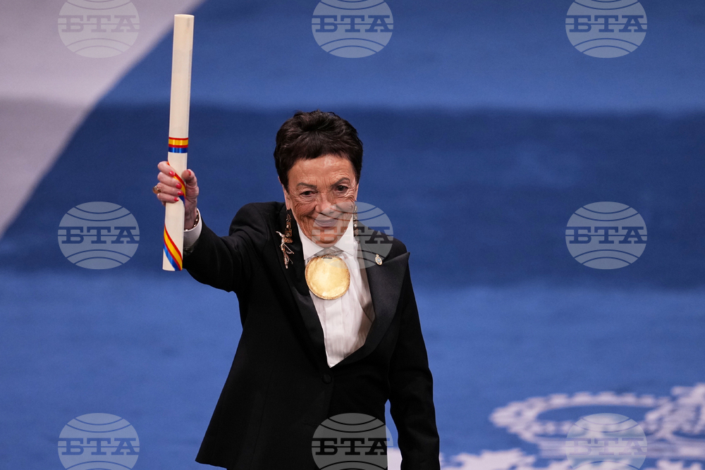 Mexican photographer Graciela Iturbide receives the Princess of Asturias Awards during a ceremony in Oviedo, northern Spain, Friday, Oct. 24, 2025. (AP Photo/Miguel Osés)