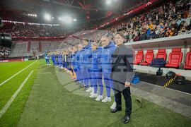 France's head coach Laurent Bonadei listens to the national anthem before the UEFA Women¥s Nations League semifinal first leg soccer match between Germany and France in Duesseldorf, Germany, Friday, Oct. 24, 2025. (AP Photo/Martin Meissner)