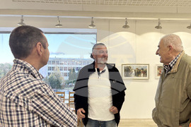 Самоков (24 октомври 2024) Художникът Владимир Чукич (в средата) подреди изложба в Художествената галерия „Проф. Васил Захариев” в Самоков. Творбите ще могат да видят до следата на месец ноември.