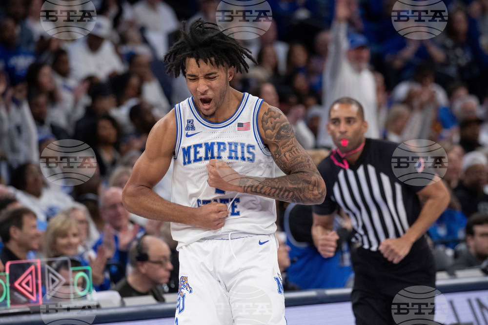 FILKE - Memphis guard PJ Haggerty celebrates during the second half of an NCAA college basketball game against UAB, Sunday, Jan. 26, 2025, in Memphis, Tenn. (AP Photo/Nikki Boertman, FIle)