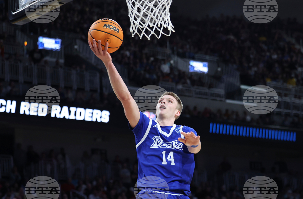 FILE - Drake guard Bennett Stirtz (14), who followed his coach and transferred to Iowa, makes a layup during the second half against Texas Tech in the second round of the NCAA college basketball tournament, Saturday, March 22, 2025, in Wichita, Kan. (AP Photo/Travis Heying, File)