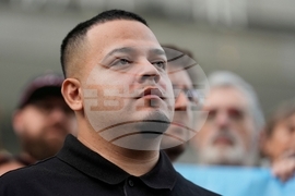 FILE - Kilmar Abrego Garcia attends a protest rally at the Immigration and Customs Enforcement field office in Baltimore, Monday, Aug. 25, 2025, to support Abrego Garcia. (AP Photo/Stephanie Scarbrough, File)