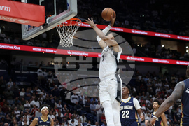 New Orleans Pelicans forward Zion Williamson (1) shoots a layup against San Antonio Spurs center Luke Kornet (7) during the second half of an NBA basketball game Friday, Oct. 24, 2025, in New Orleans. (AP Photo/Peter Forest)