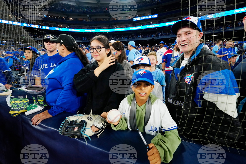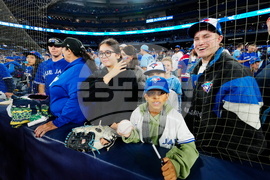 Toronto Blue Jays fans wait ahead of Game 1 of baseball's World Series against the Los Angeles Dodgers in Toronto, Friday, Oct. 24, 2025. (Frank Gunn/The Canadian Press via AP)