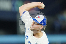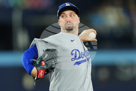 Los Angeles Dodgers pitcher Blake Snell delivers against the Toronto Blue Jays during of first inning of Game 1 of baseball's World Series in Toronto, Friday, Oct. 24, 2025. (Frank Gunn/The Canadian Press via AP)