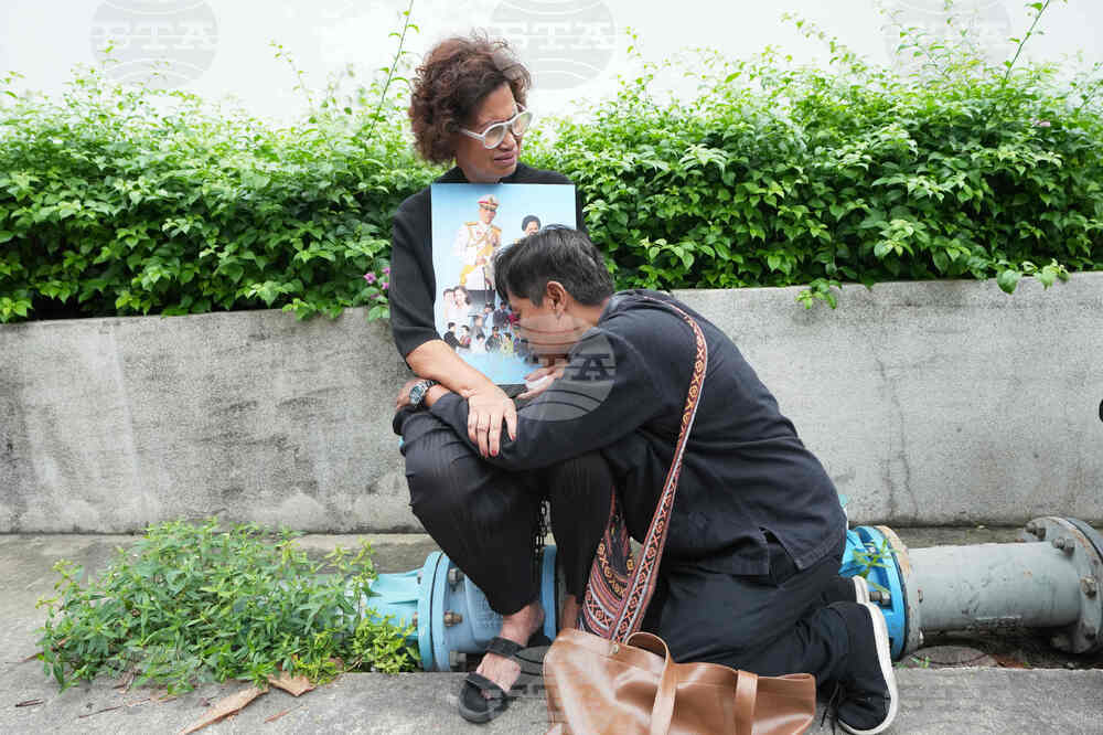 Mourners gather on the premises of Chulalongkorn Hospital in Bangkok, Thailand Saturday, Oct. 25, 2025, after hearing the news that Thailand Queen Mother Sirikit died. (AP Photo/Sakchai Lalit)