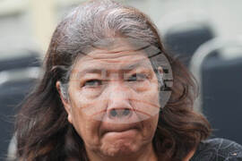 A mourner holds the portraits of Thailand Queen Mother Sirikit in Bangkok, Thailand, Saturday, Oct. 25, 2025. (AP Photo/Sakchai Lalit)
