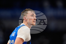 Dallas Mavericks forward Cooper Flagg jogs downcourt in the second half of an NBA basketball game against the Washington Wizards, Friday, Oct. 24, 2025, in Dallas. (AP Photo/Tony Gutierrez)