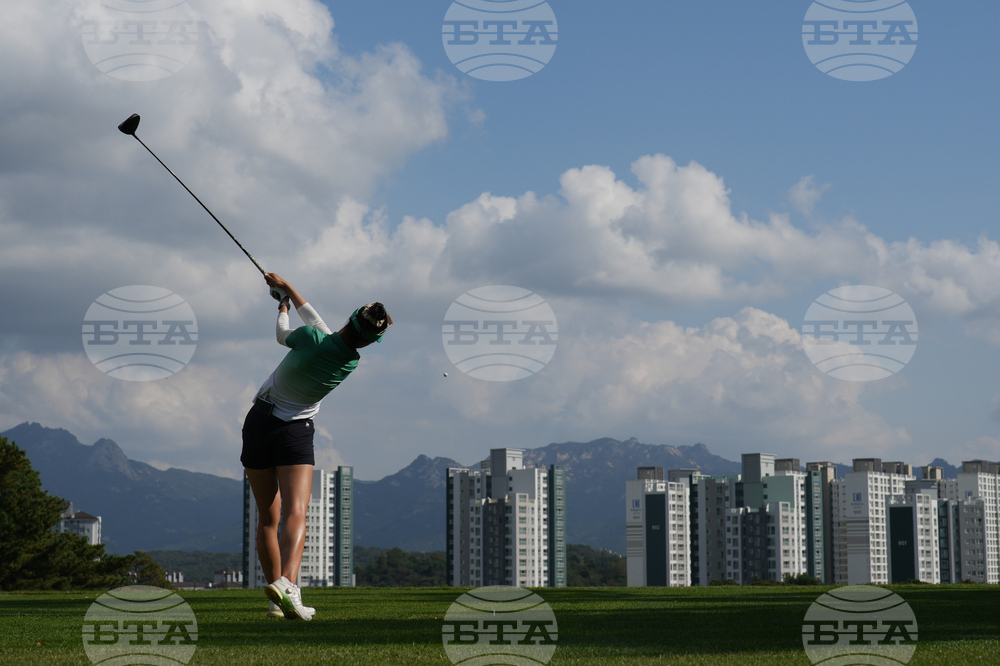 Jeeno Thitikul of Thailand tees off on the 10th hole during the pool A match against China team for the LPGA International Crown golf tournament at the New Korea Country Club in Goyang, South Korea, Saturday, Oct. 25, 2025. (AP Photo/Lee Jin-man)