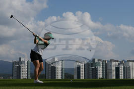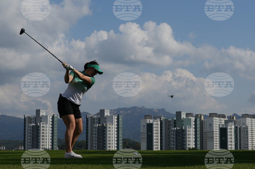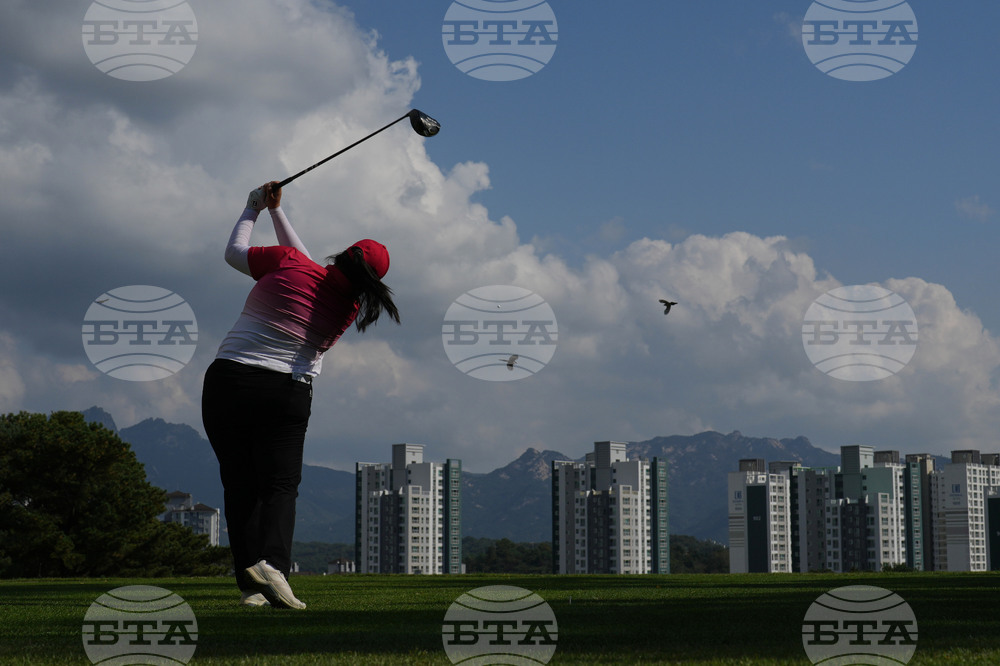 Yealimi Noh of the United States, tees off on the 10th hole during the pool A match against Australia team for the LPGA International Crown golf tournament at the New Korea Country Club in Goyang, South Korea, Saturday, Oct. 25, 2025. (AP Photo/Lee Jin-man)
