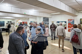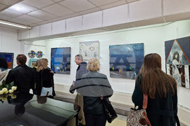 Монтана (25 октомври 2025) Снощи в Художествената галерия „Кирил Петров“ - Монтана бяха наградени финалистите в Националната изложба биенале „Тенец“. Отличията на името на Йордан Радичков бяха връчени при откриването на изложбата с творбите от конкурса в галерията. На снимката: Славина Русева-Стефанова спечелила голямата награда.