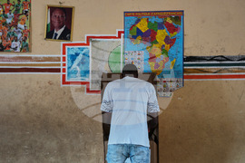 A man cast his vote during the presidential elections in Cocody, Ivory coast, Saturday, Oct. 25, 2025, (AP Photo/Diomande Ble Blonde)