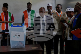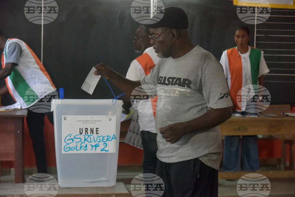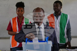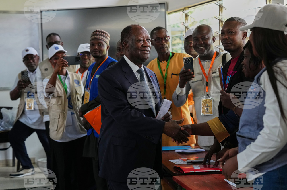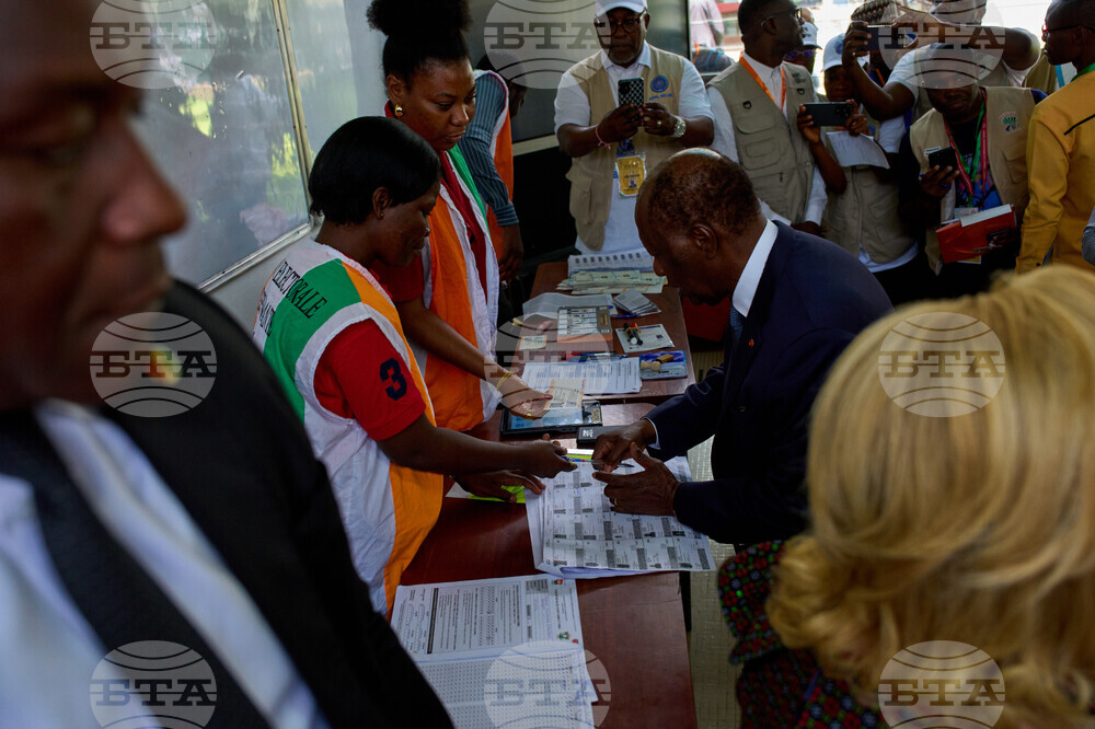 Ivory Coast President Alassane cast his vote at a polling station during the presidential elections in Abidjan, Ivory Coast, Saturday, Oct. 25, 2025. (AP Photo/Misper Apawu)