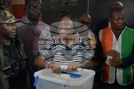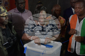 Simone Ehivet Gbagbo, Opposition Presidential candidate casts her vote during the presidential elections in Cocody, Ivory coast, Saturday, Oct. 25, 2025, (AP Photo/Diomande Ble Blonde)